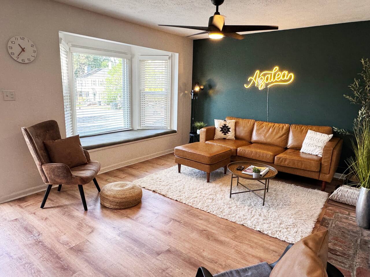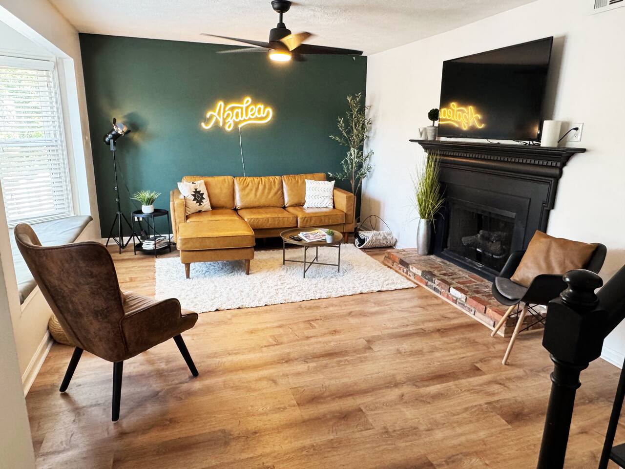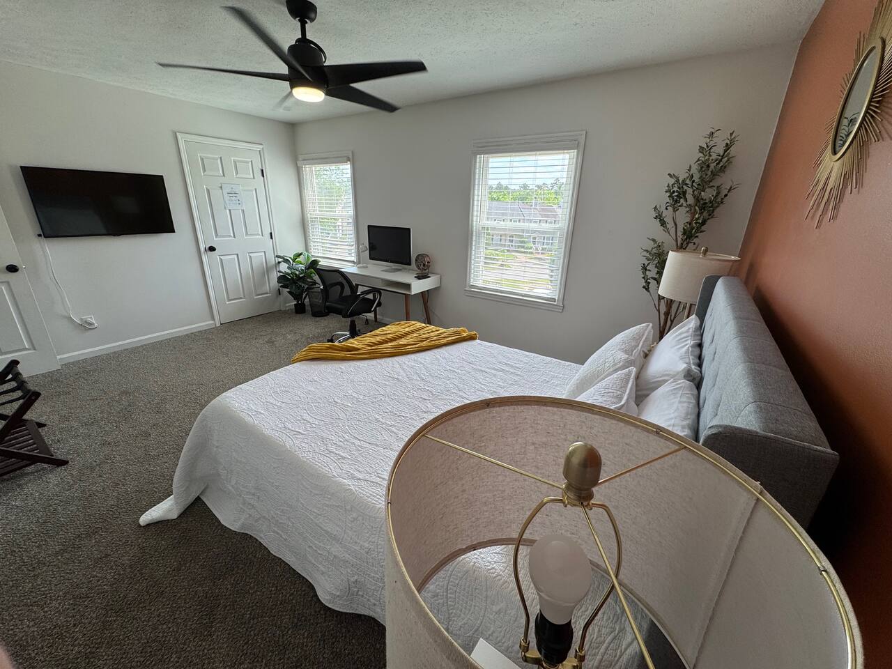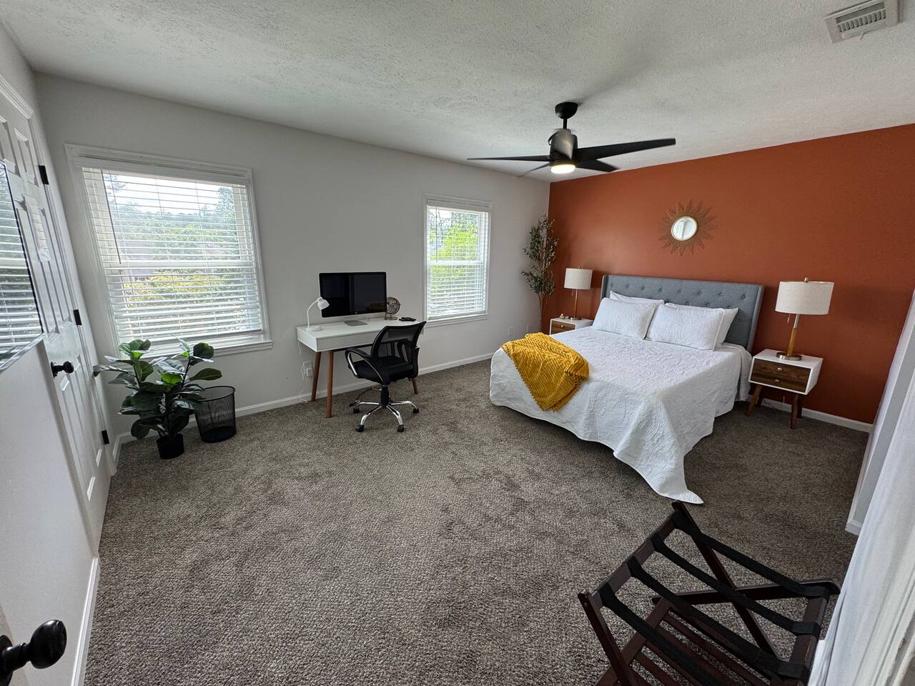 Enjoy a stylish experience at this centrally-located townhome. Whether in town to watch the Masters, for business, to see family or have some fun we look forward to hosting you in our newly updated townhome. • Two bedrooms, each with their own attached full bathroom, is sure to suit your needs • At your request, before your arrival, one bedroom can have it's 2 twin XL beds converted into a king • With our comfy futon, air mattress and pack 'n play our home sleeps 4-6 people • Back deck