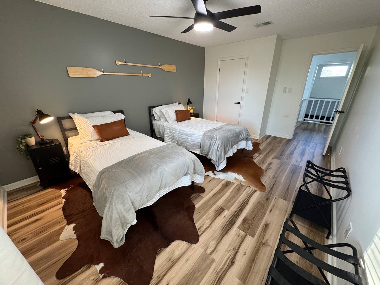 Bedroom 1: Queen Bedroom 2: Queen Bedroom 3: 2 twin XL Other: Queen size air mattress 1 full bedroom upstairs 1 full bedroom downstairs