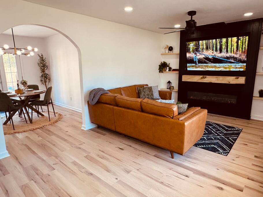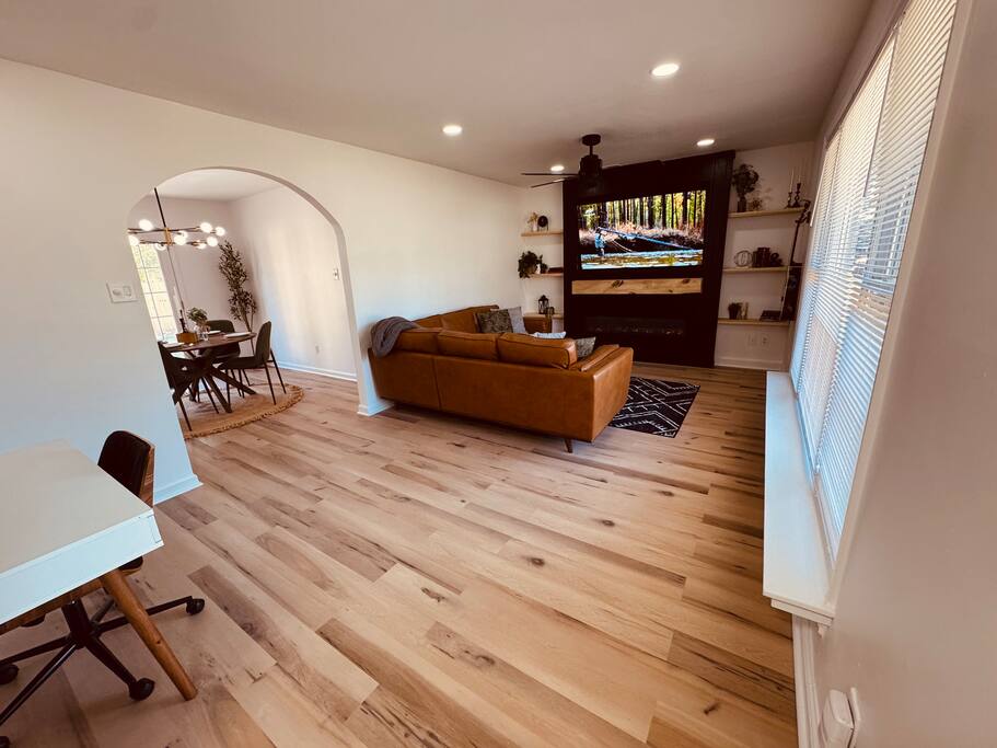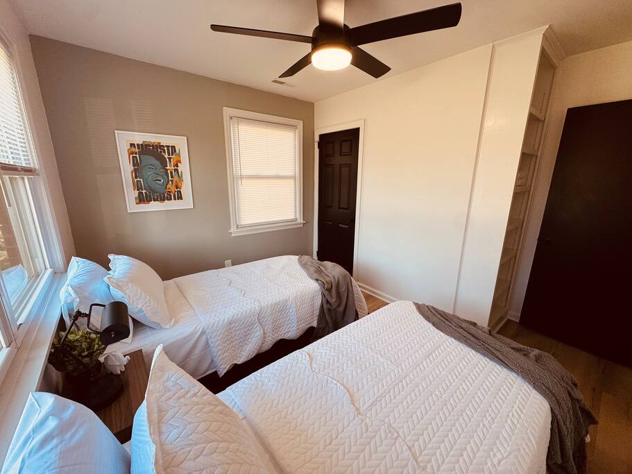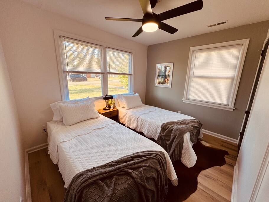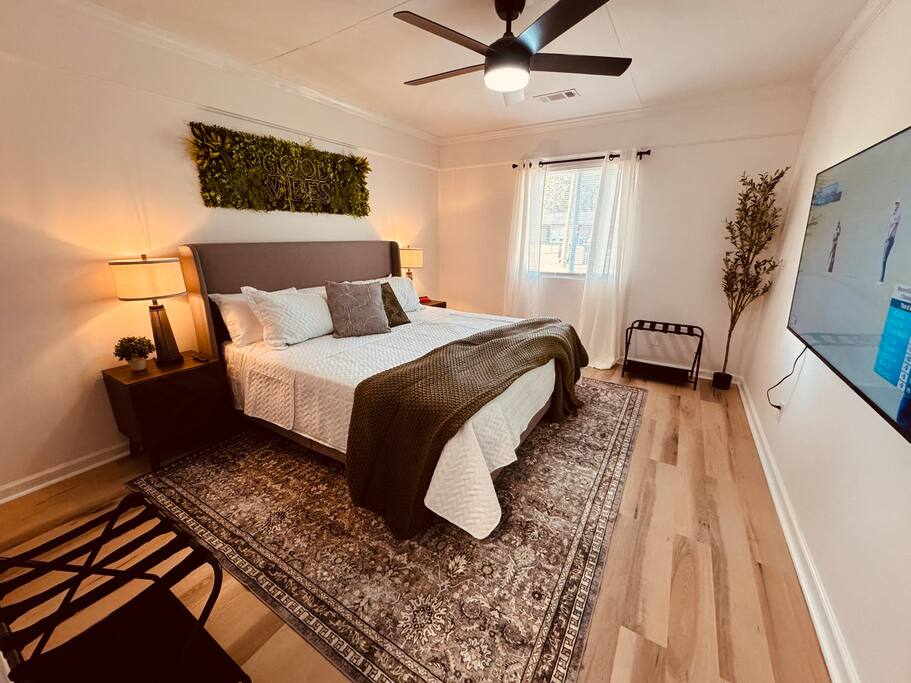 Bedroom 1: King w/ 65" TV Bedroom 2: Queen Bedroom 3: 2 twin xls *There is also a queen air mattress and pack n' play 1 bathroom with shower/bathtub combo