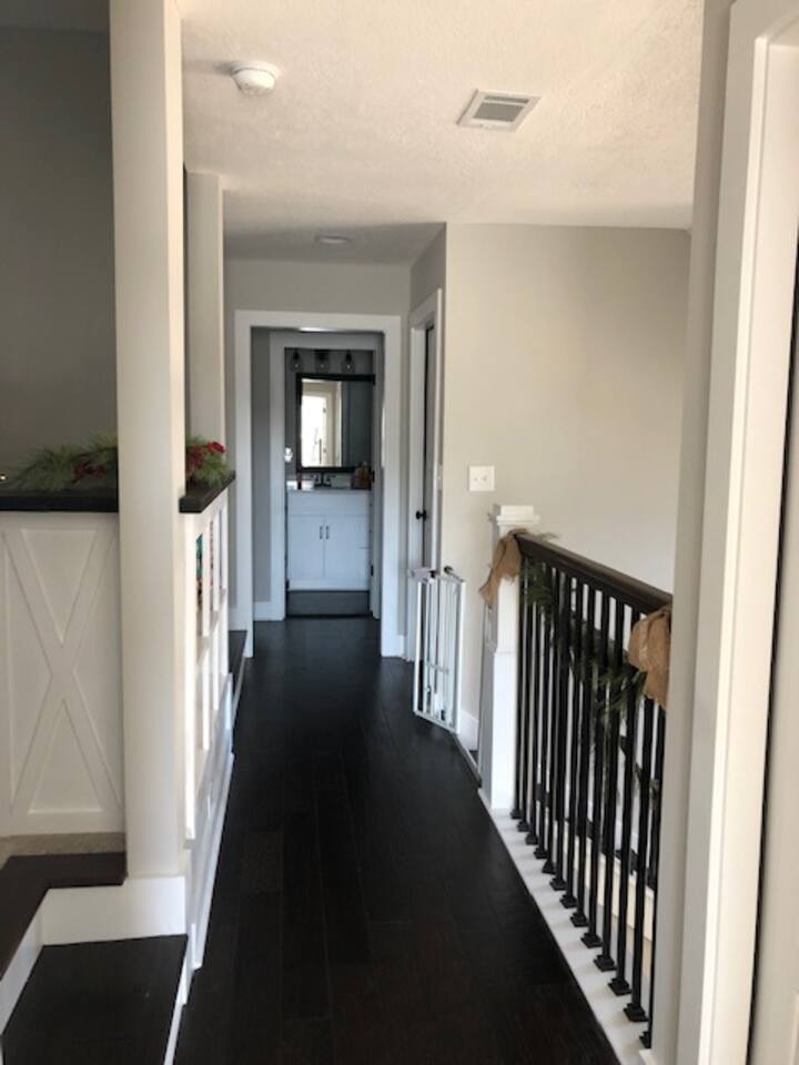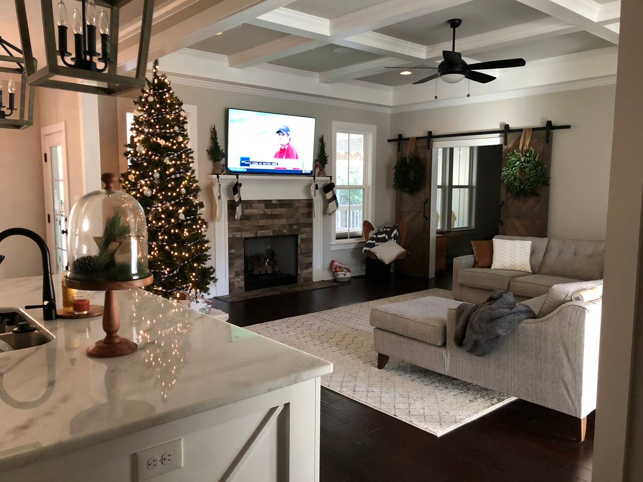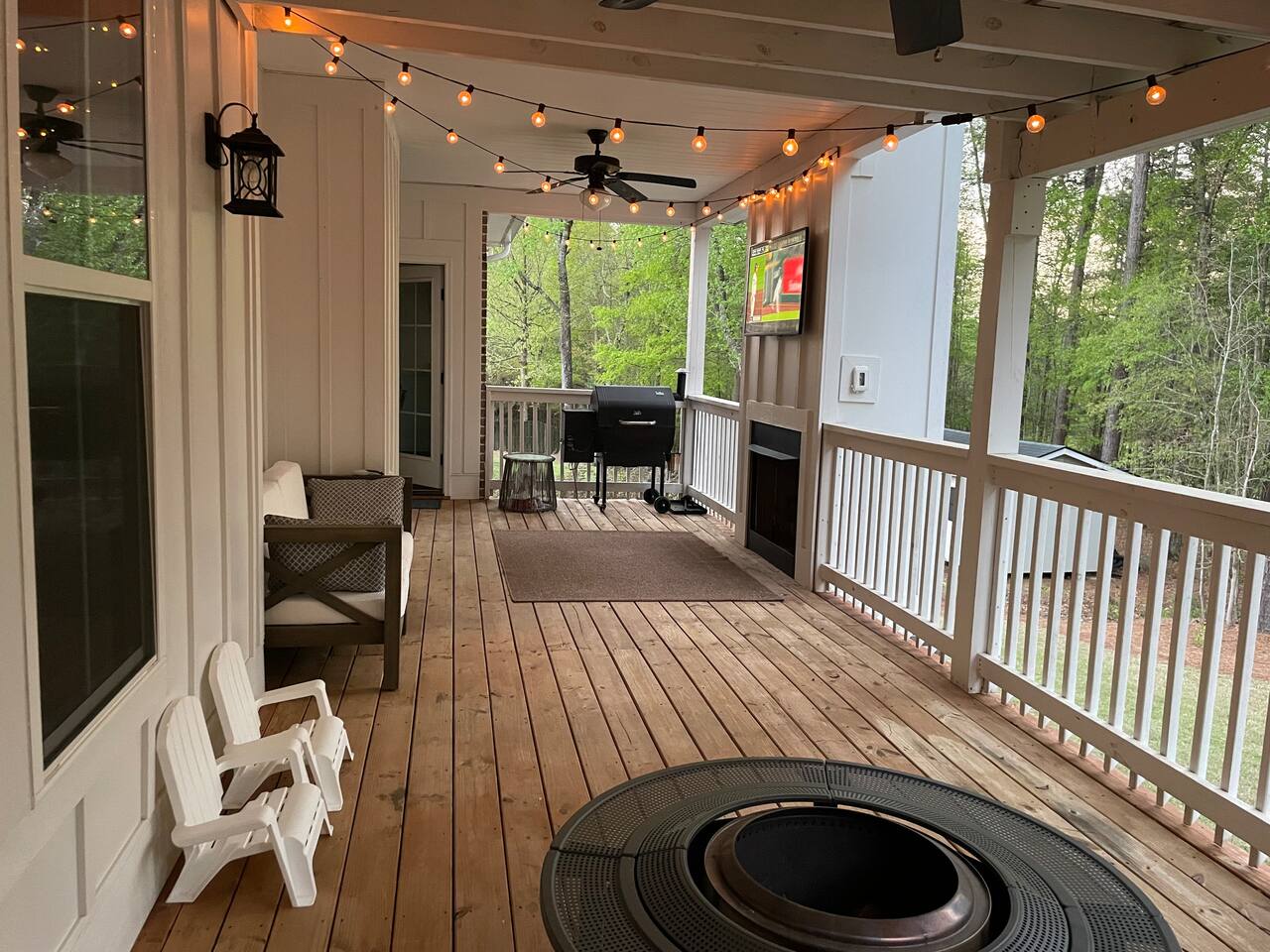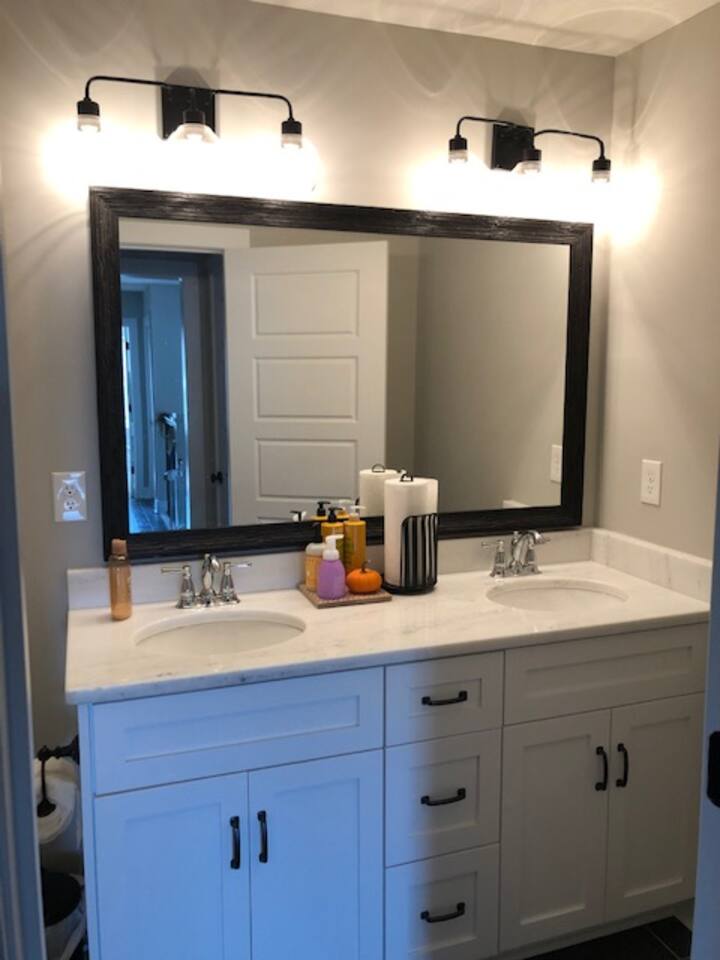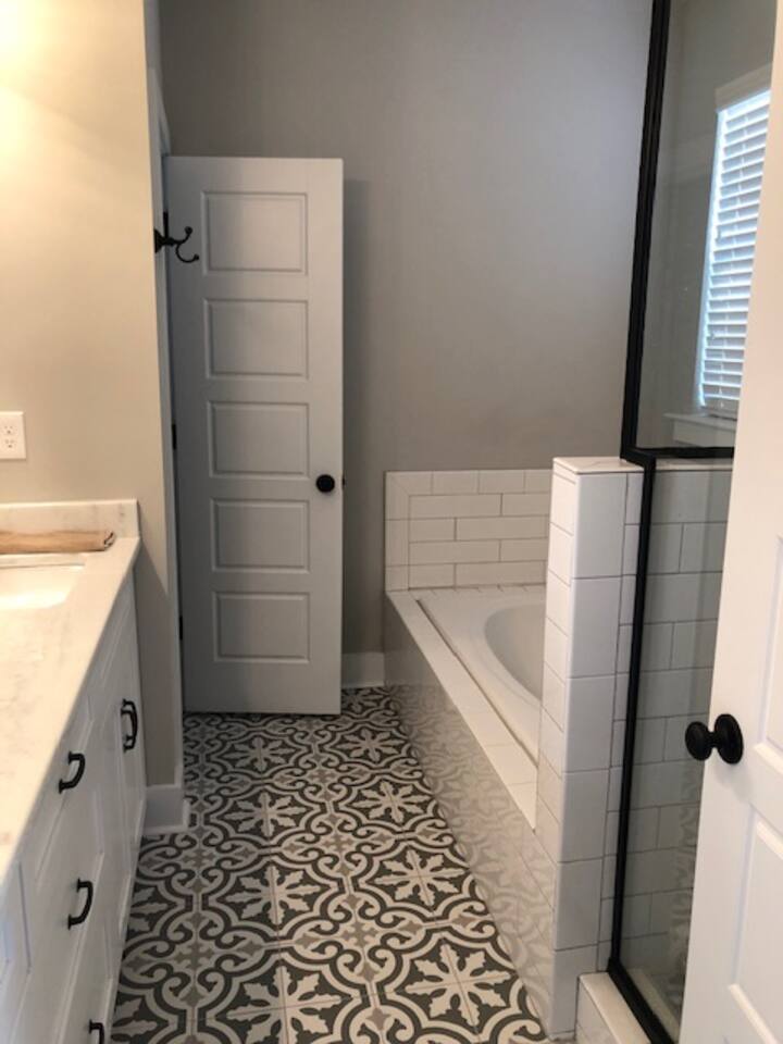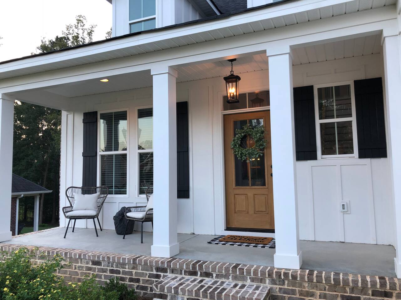 Brand new home minutes from the course. Great room, large loft, and back porch all perfect for big screen tv viewing of the Masters when you need a break from walking the course. Higher-end neighborhood, access to the Greenway, minutes away from everything, wood pellet grill, Xbox 1, and neighborhood pool when you need a break from golf. House backs to green space (pine trees) for a beautiful view and privacy.